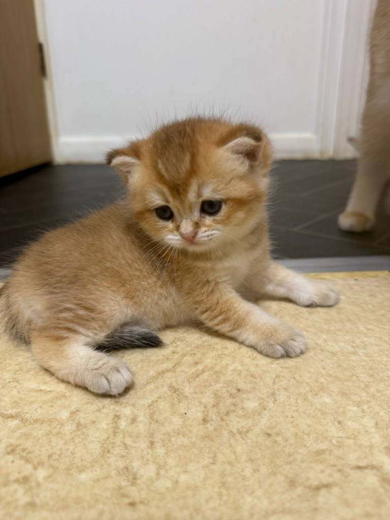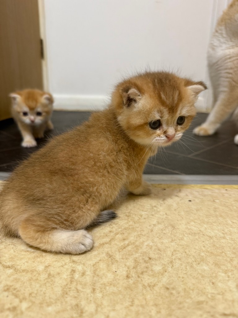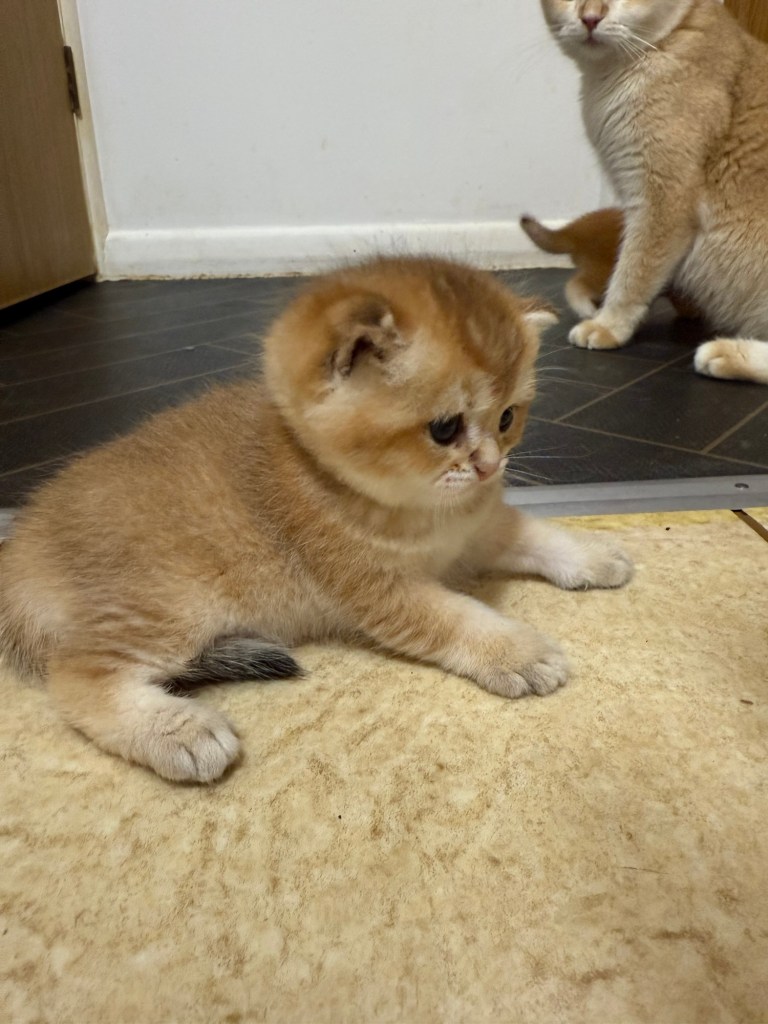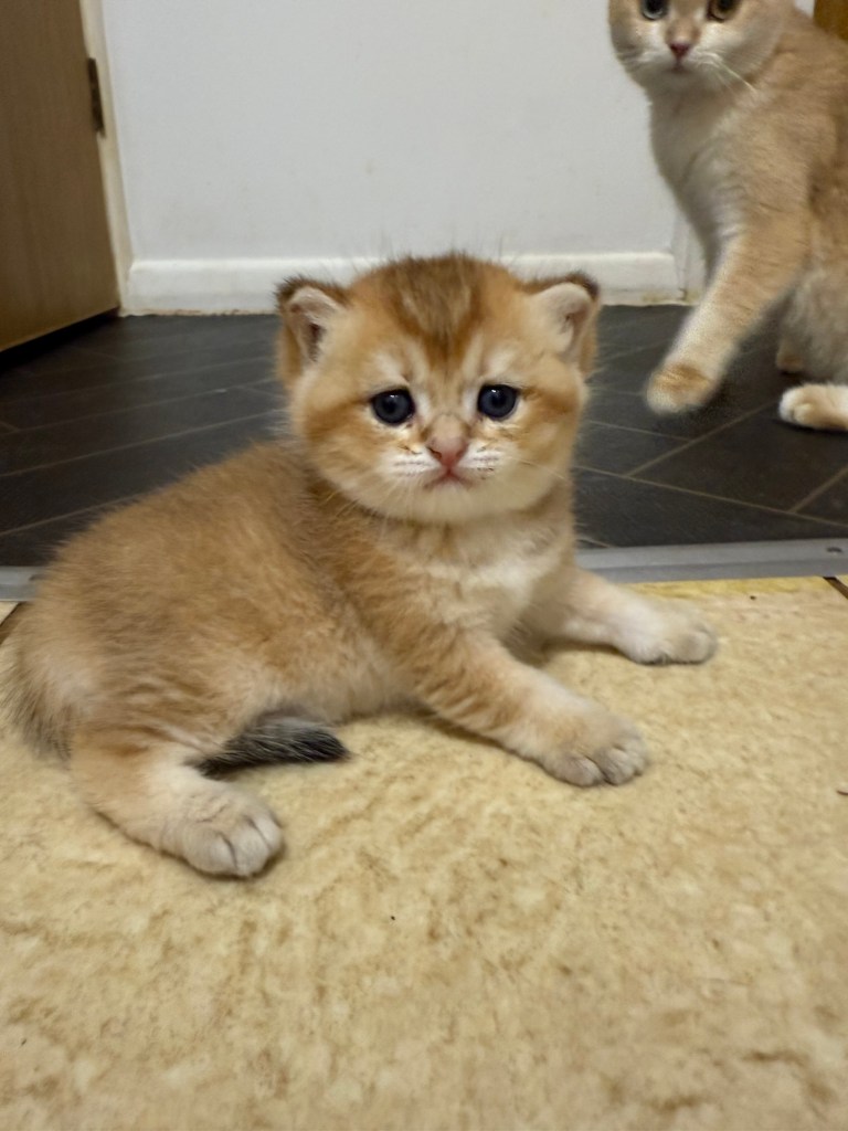 I am proud to announce our GCCF registered British five generations pedigree shorthair Black Golden Tipped Afina and Chocolate Golden Tipped Odd Eyes Hoper have had litters of seven beautiful healthy Chocolate Golden Tipped two females and five males kittens.
